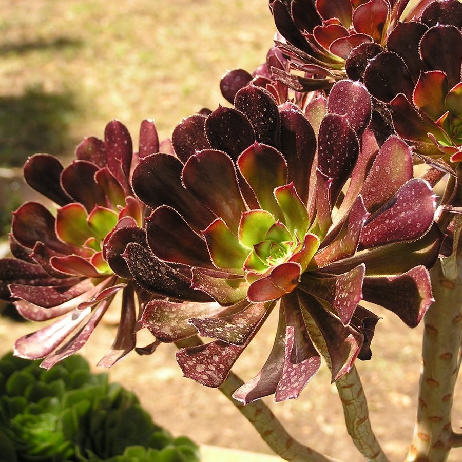 Tree aeonium is generally easy to care for and needs little attention once established. It grows most actively during the cooler parts of the year in many climates and may slow down during intense summer heat. Provide some afternoon shade in very hot inland areas to prevent leaf scorch, while giving more sun in cooler coastal regions to maintain compact growth. Protect plants from frost, especially prolonged freezes, which can damage stems and foliage.